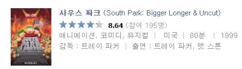 - South.Park.Bigger.Longer.and.Uncut.1999.720p.BluRay.x264.YIFY.mp4|South.Park.Bigger.Longer.and.Uncut.1999.720p.BluRay.x264.YIFY.torrent (693.7M) 다운로드 : 22,172