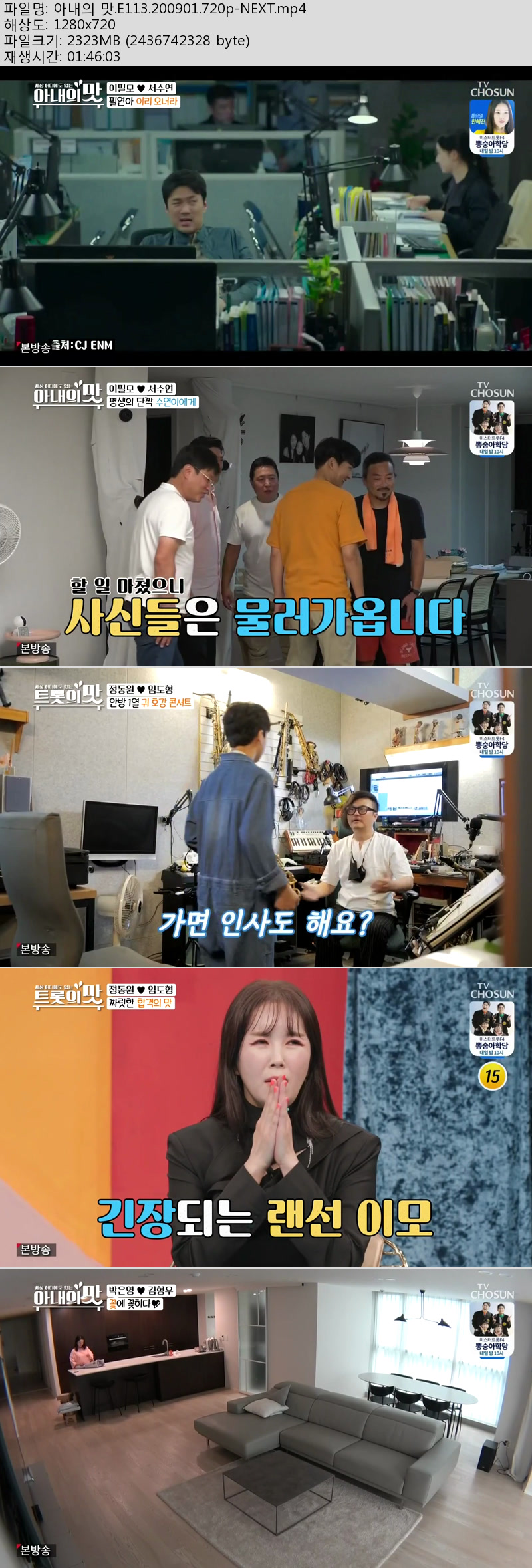 • 아내의 맛.E113.200901.720p-NEXT.mp4 (2.3G) 다운로드 : 22,615