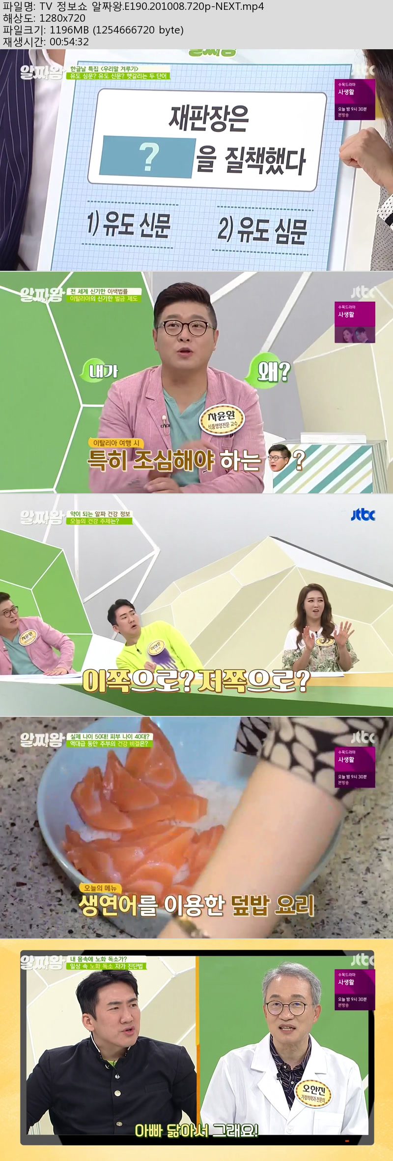 - TV 정보쇼 알짜왕.E190.201008.720p-NEXT.mp4 (1.2G) 다운로드 : 25,806