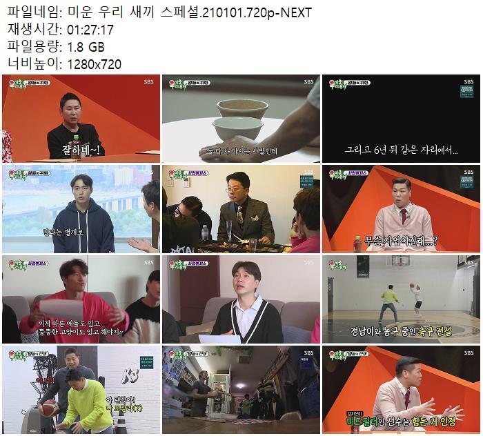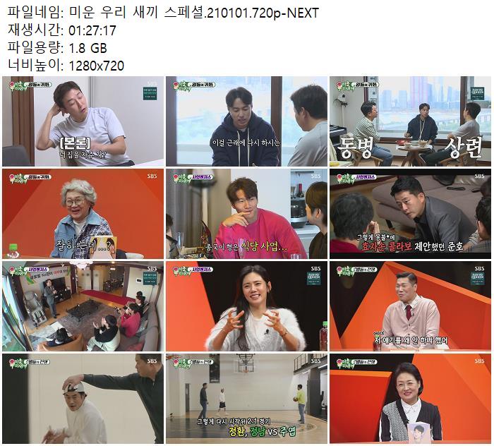 • 미운 우리 새끼 스페셜.210101.720p-NEXT.mp4 (1.8G) 다운로드 : 29,292