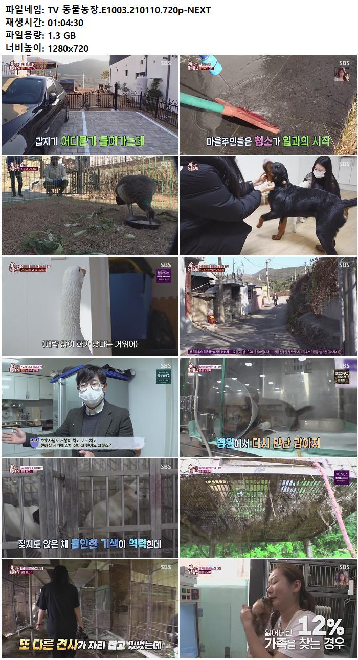 • TV 동물농장.E1003.210110.720p-NEXT.torrent (1.3G) 다운로드 : 29,182