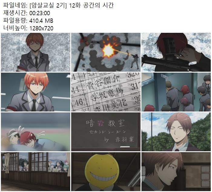 - [암살교실 2기] 12화 공간의 시간.mp4|[암살교실 2기] 12화 공간의 시간.SMI (410.4M) 다운로드 : 36,451