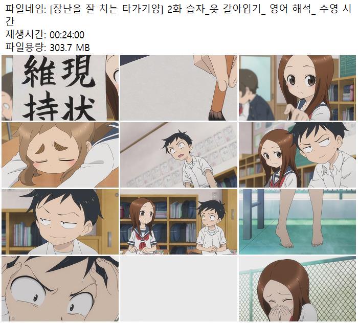 [장난을 잘 치는 타가기양] 2화 습자 옷 갈아입기 영어 해석 수영 시간