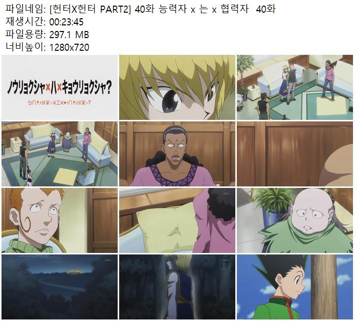 - [헌터X헌터 PART2] 40화 능력자 x 는 x 협력자 40화.mp4|[헌터X헌터 PART2] 40화 능력자 x 는 x 협력자 40화.smi (297.1M) 다운로드 : 38,409