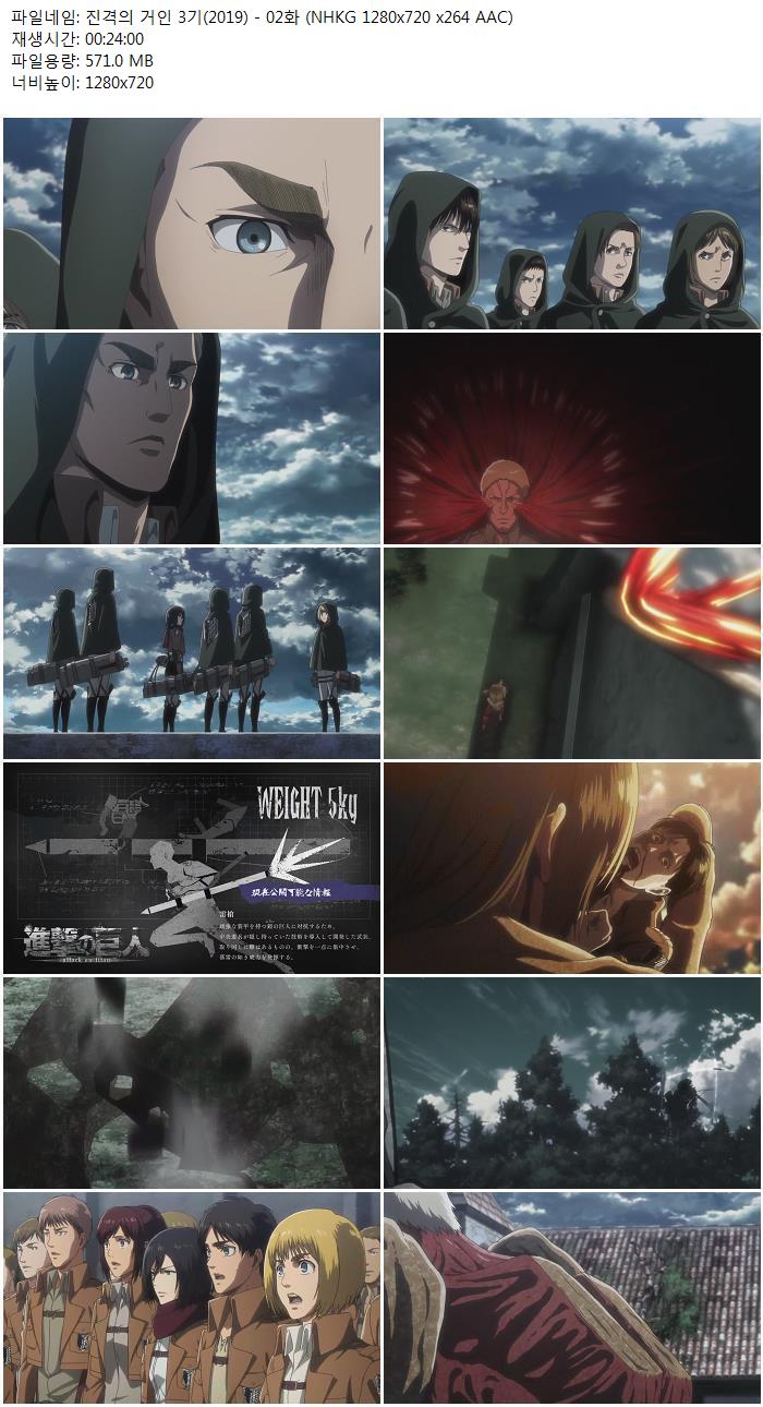 - [Ohys-Raws] Shingeki no Kyojin Season 3 (2019) - 02 (NHKG 1280x720 x264 AAC).mp4|[Ohys-Raws] Shingeki no Kyojin Season 3 (2019) - 02 (NHKG 1280x720 x264 AAC).smi (571.0M) 다운로드 : 39,872