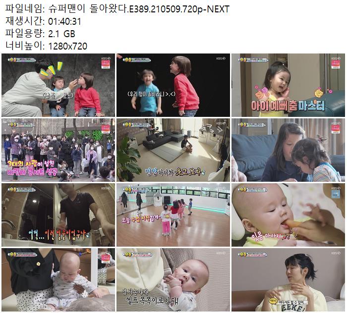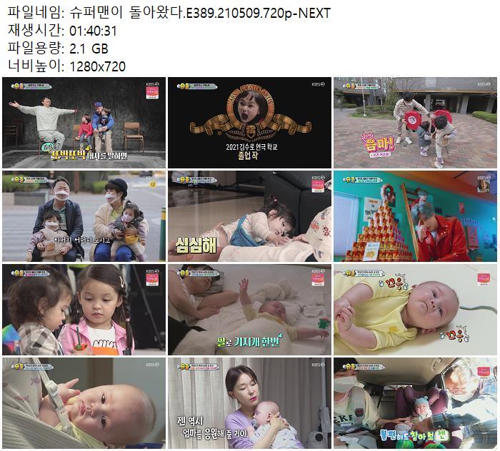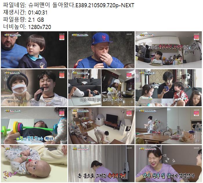• 슈퍼맨이 돌아왔다.E389.210509.720p-NEXT.torrent (2.1G) 다운로드 : 39,873