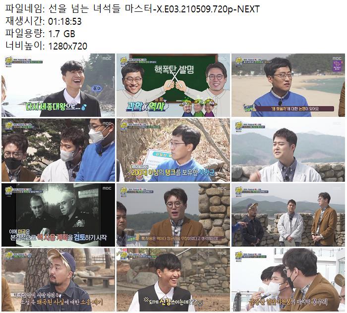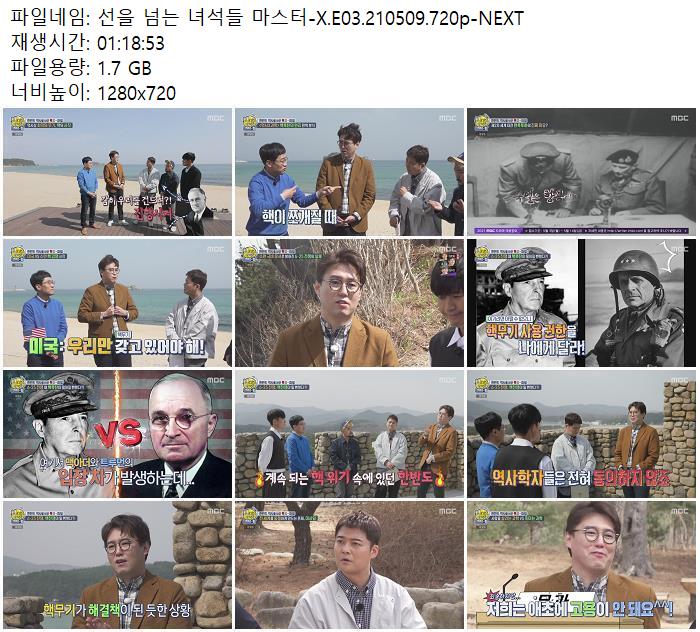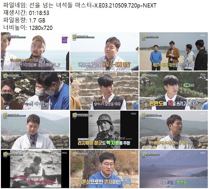 • 선을 넘는 녀석들 마스터-X.E03.210509.720p-NEXT.mp4 (1.7G) 다운로드 : 40,242
