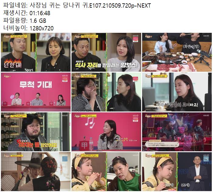 • 사장님 귀는 당나귀 귀.E107.210509.720p-NEXT.torrent (1.6G) 다운로드 : 39,874
