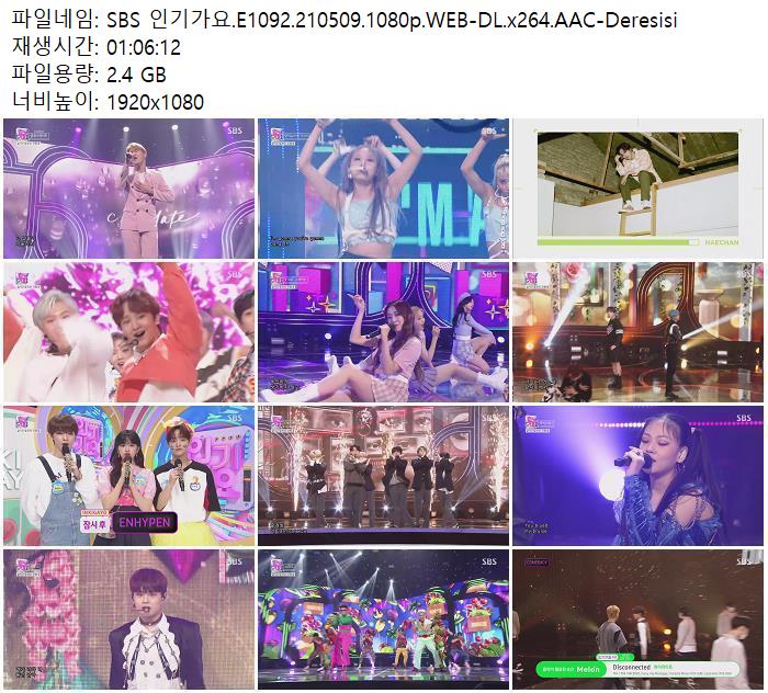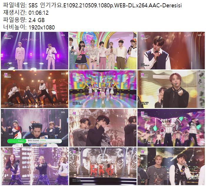 - SBS 인기가요.E1092.210509.1080p.WEB-DL.x264.AAC-Deresisi.torrent (2.4G) 다운로드 : 39,874