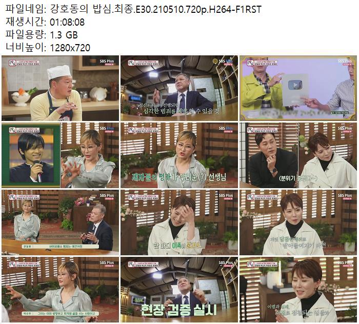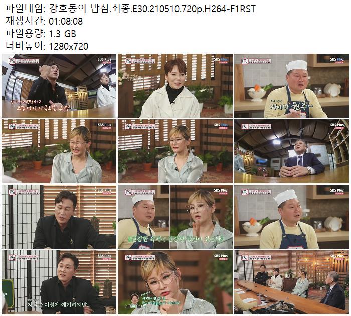- 강호동의 밥심.최종.E30.210510.720p.H264-F1RST.mp4 (1.3G) 다운로드 : 40,356