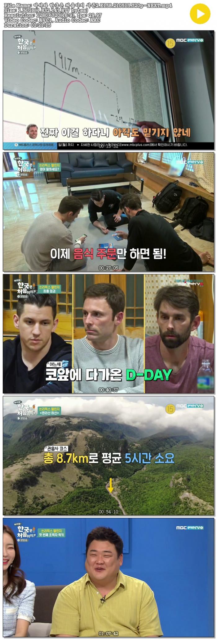 - 어서와 한국은 처음이지 시즌2.E158.210513.720p-NEXT.torrent (1.7G) 다운로드 : 40,214
