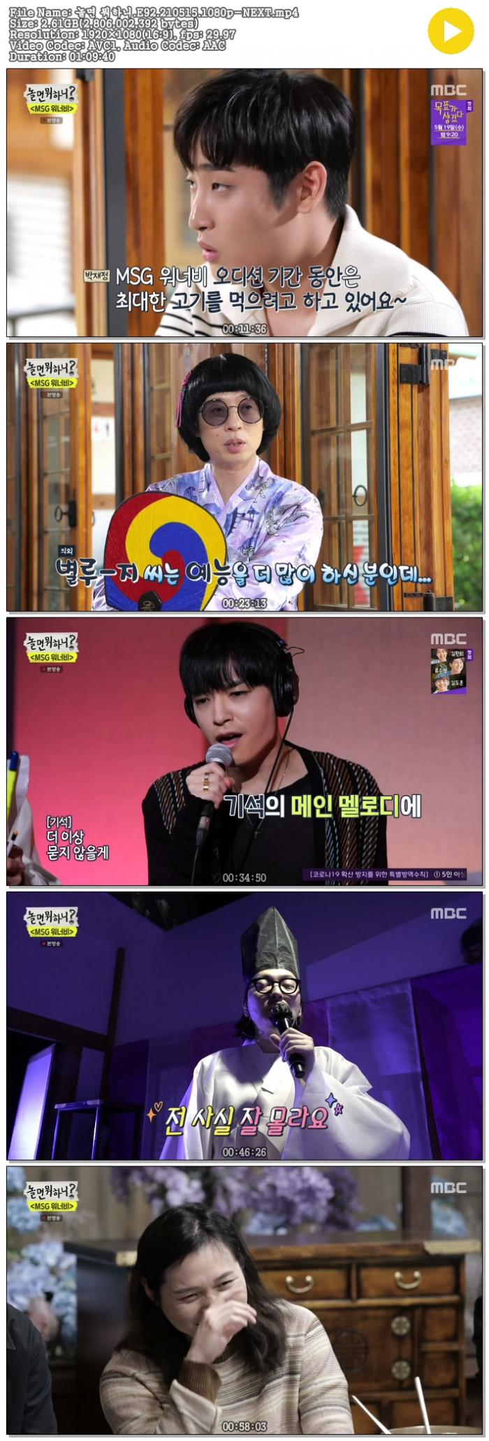 • 놀면 뭐하니.E92.210515.1080p-NEXT.mp4 (2.6G) 다운로드 : 40,775