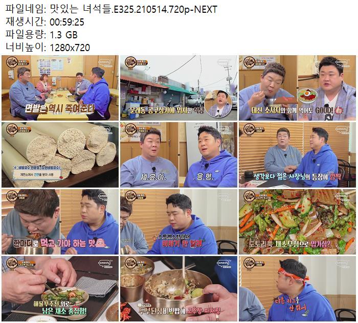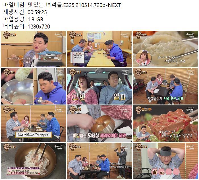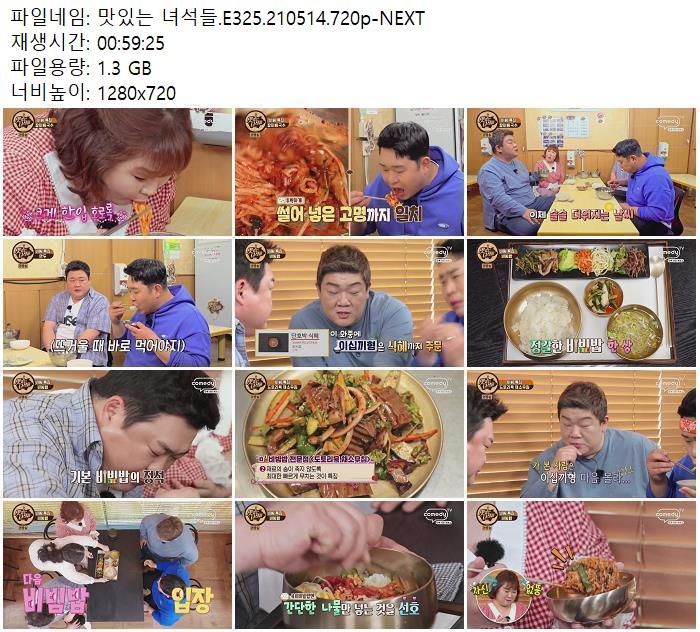• 맛있는 녀석들.E325.210514.720p-NEXT.mp4 (1.3G) 다운로드 : 40,817