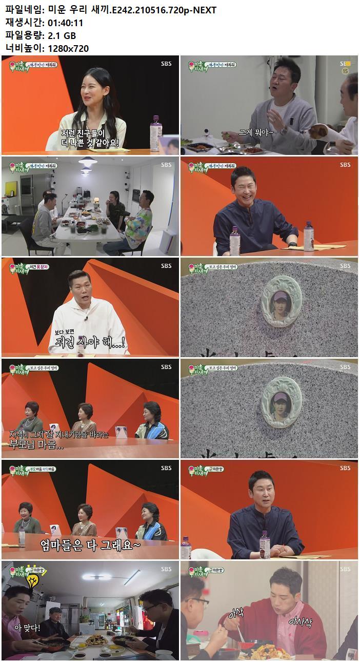 • 미운 우리 새끼.E242.210516.720p-NEXT.torrent (2.1G) 다운로드 : 40,510