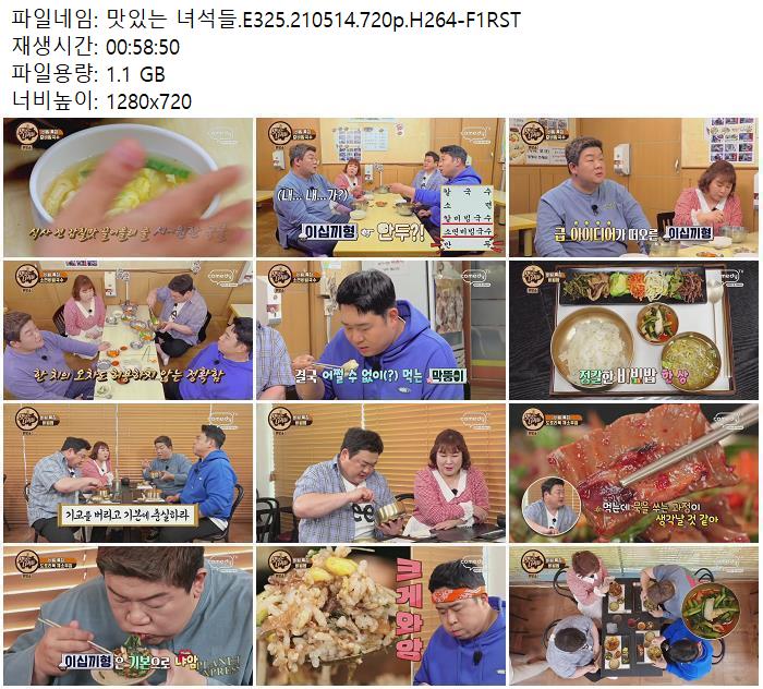 - 맛있는 녀석들.E325.210514.720p.H264-F1RST.mp4 (1.1G) 다운로드 : 40,925