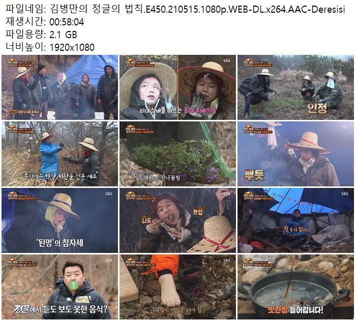 - 김병만의 정글의 법칙.E450.210515.1080p.WEB-DL.x264.AAC-Deresisi.torrent (2.1G) 다운로드 : 40,562