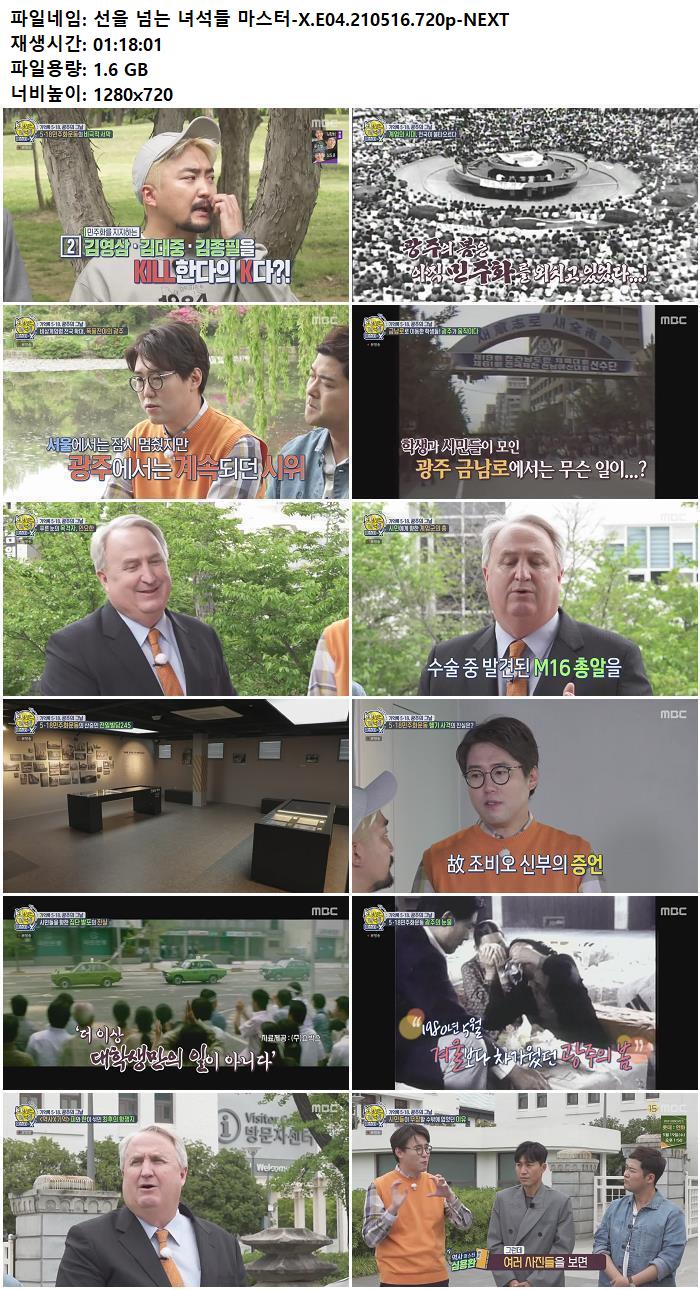 - 선을 넘는 녀석들 마스터-X.E04.210516.720p-NEXT.mp4 (1.6G) 다운로드 : 40,939