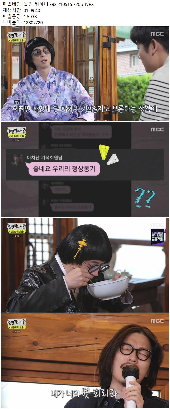 • 놀면 뭐하니.E92.210515.720p-NEXT.mp4 (1.5G) 다운로드 : 40,939
