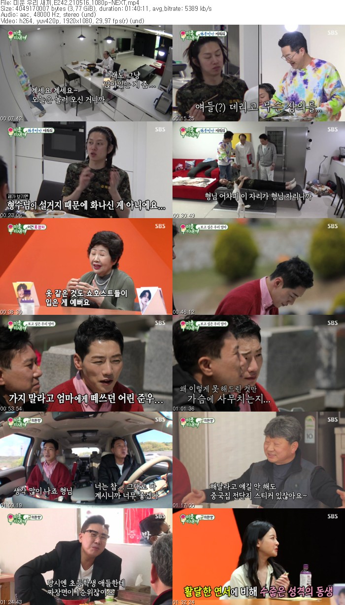 • 미운 우리 새끼.E242.210516.1080p-NEXT.mp4 (3.8G) 다운로드 : 41,024
