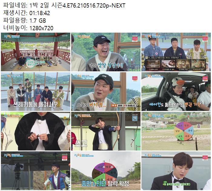 • 1박 2일 시즌4.E76.210516.720p-NEXT.torrent (1.7G) 다운로드 : 40,677