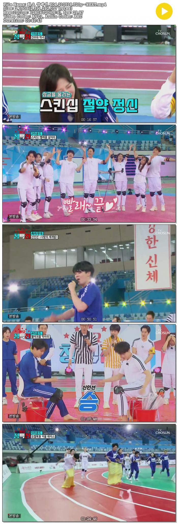 • 화요 청백전.E04.210518.720p-NEXT.mp4 (2.2G) 다운로드 : 41,162