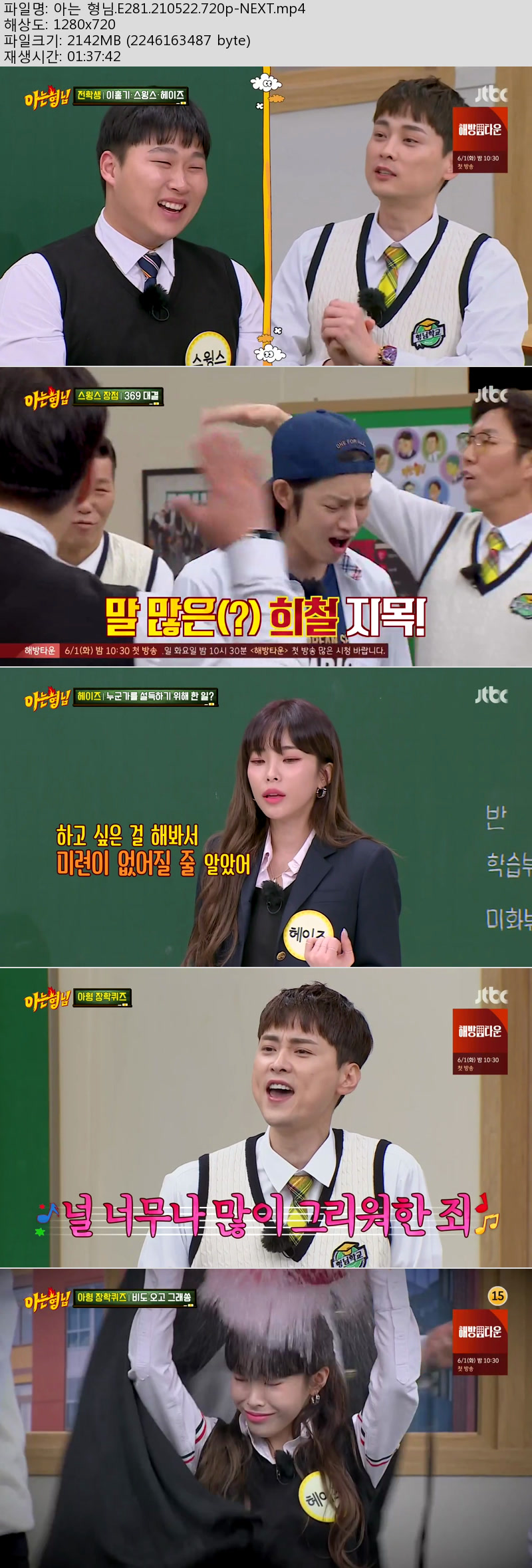 • 아는 형님.E281.210522.720p-NEXT.mp4 (2.1G) 다운로드 : 41,627