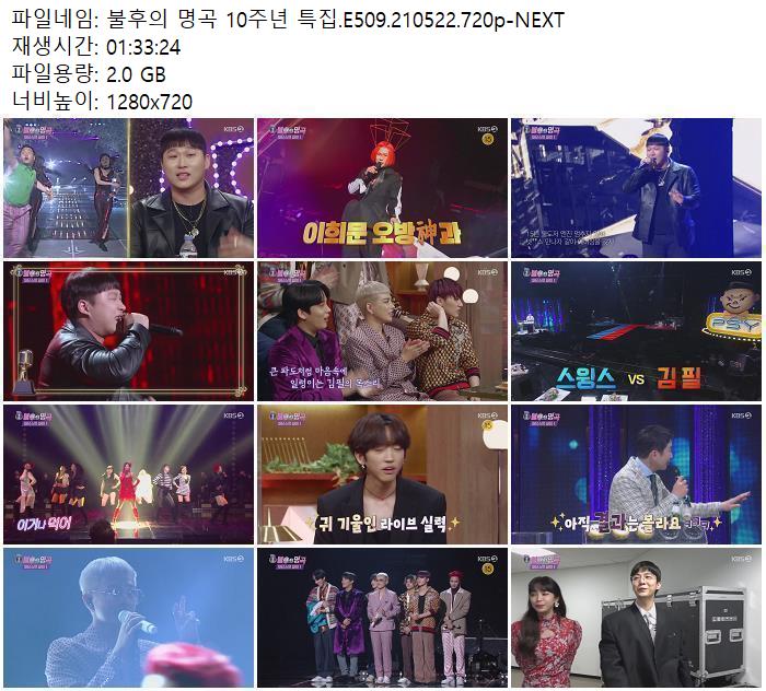 - 불후의 명곡 10주년 특집.E509.210522.720p-NEXT.torrent (2.0G) 다운로드 : 41,374
