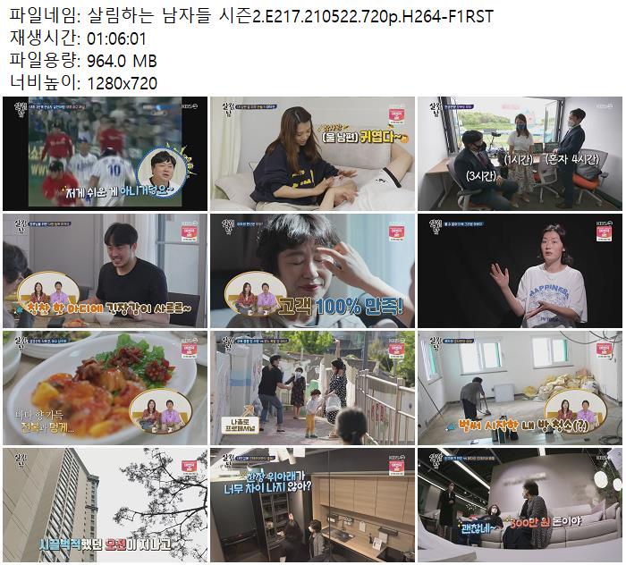 - 살림하는 남자들 시즌2.E217.210522.720p.H264-F1RST.mp4 (964.0M) 다운로드 : 41,744