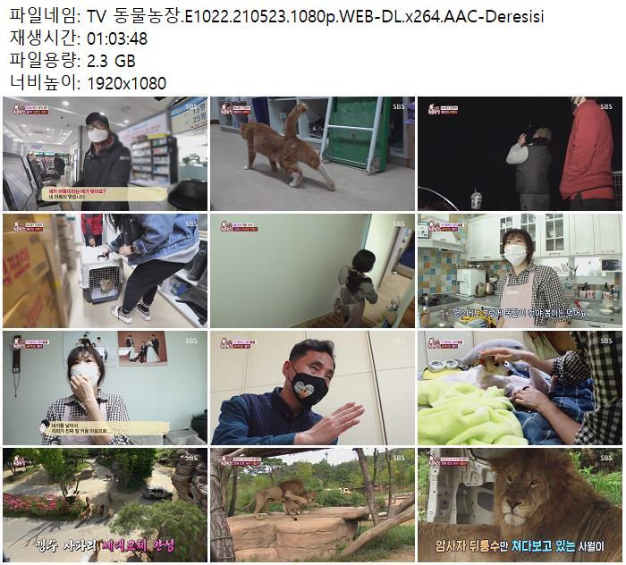 - TV 동물농장.E1022.210523.1080p.WEB-DL.x264.AAC-Deresisi.mp4 (2.3G) 다운로드 : 41,745