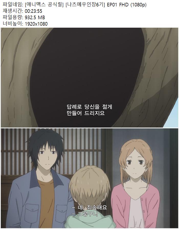 - [애니맥스 공식릴] [나츠메우인장6기] EP01 FHD (1080p).mp4 (932.5M) 다운로드 : 45,176