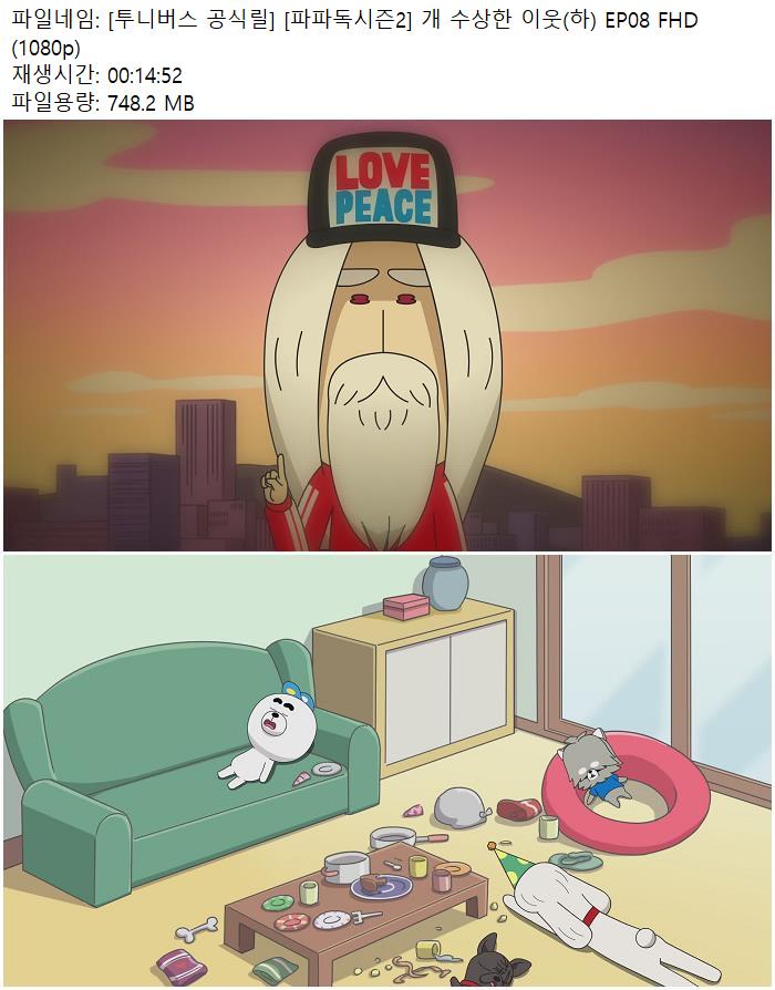 - [투니버스 공식릴] [파파독시즌2] 개 수상한 이웃(하) EP08 FHD (1080p).torrent (748.2M) 다운로드 : 45,631