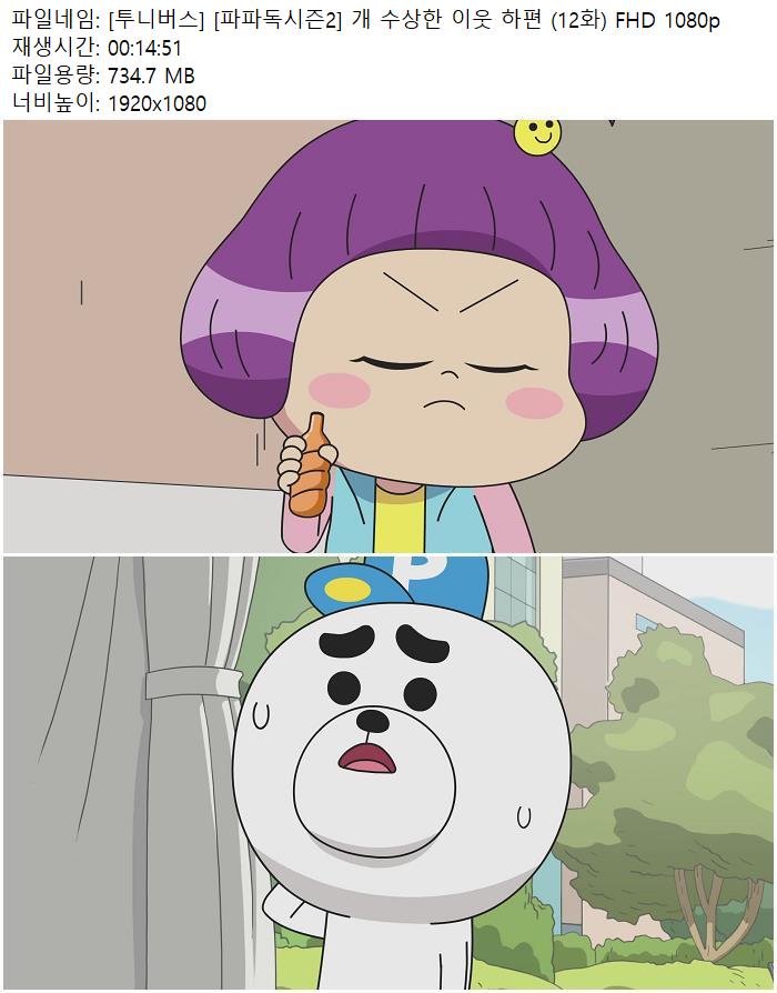 - [투니버스 공식릴] [파파독시즌2] 개 수상한 이웃 하편 (12화) FHD 1080p.torrent (734.7M) 다운로드 : 47,090