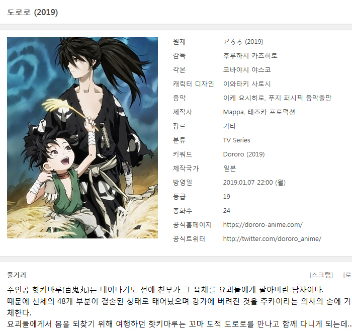 [인생] 도로로 [Dororo] 01-24완결 -모험 시대 스릴러 액션 드라마-