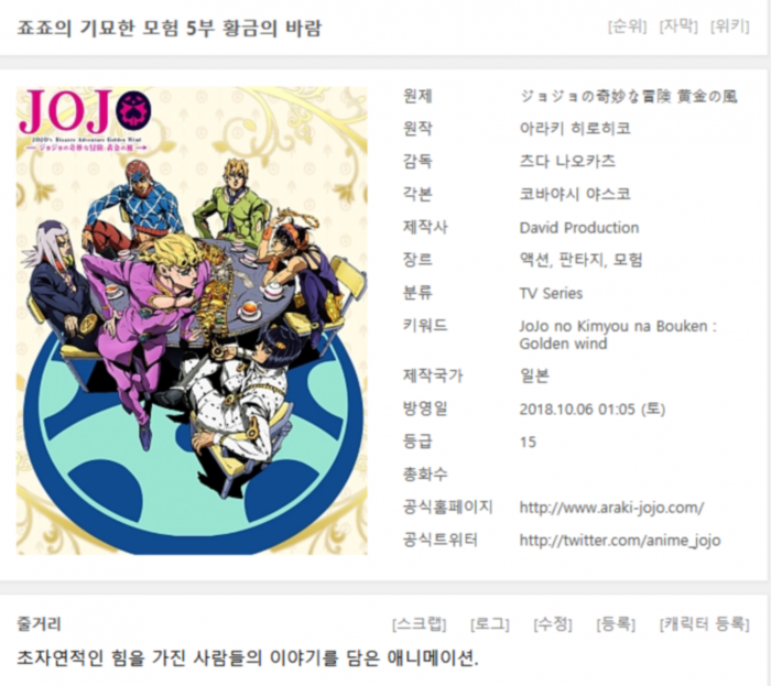 [완결] 죠죠의 기묘한 모험 5부. 황금의 바람 1-20화 BS11 1280×720