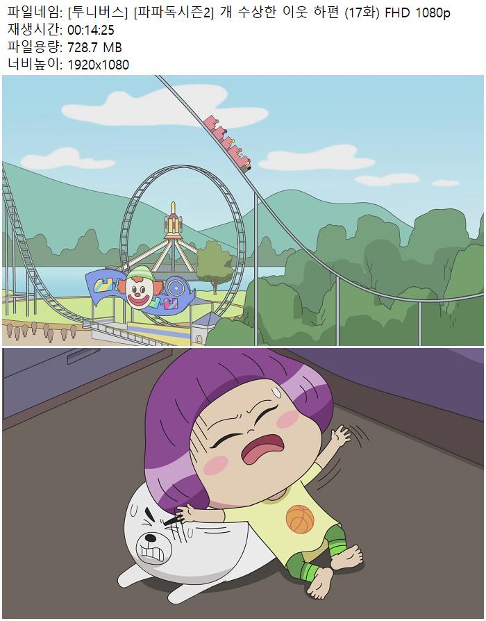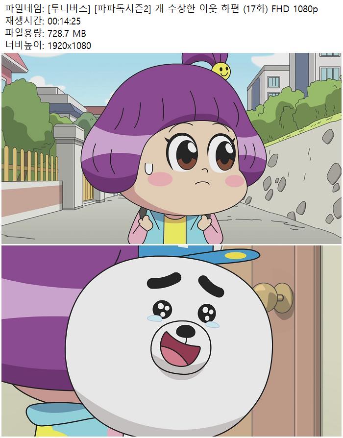 - [투니버스] [파파독시즌2] 개 수상한 이웃 하편 (17화) FHD 1080p.mp4 (728.7M) 다운로드 : 50,038