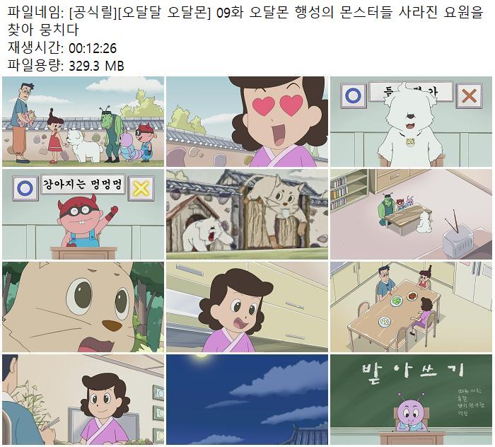 - [공식릴][오달달 오달몬] 09화 오달몬 행성의 몬스터들 사라진 요원을 찾아 뭉치다.mp4 (329.3M) 다운로드 : 51,402