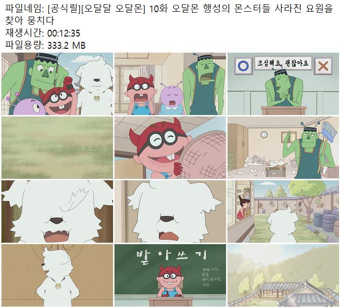 - [공식릴][오달달 오달몬] 10화 오달몬 행성의 몬스터들 사라진 요원을 찾아 뭉치다.mp4 (333.2M) 다운로드 : 51,403