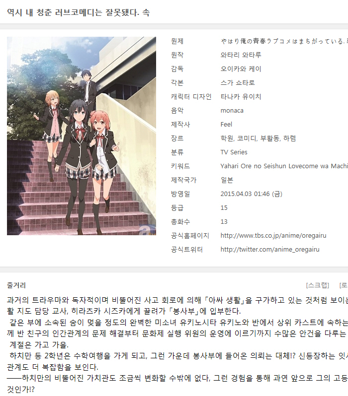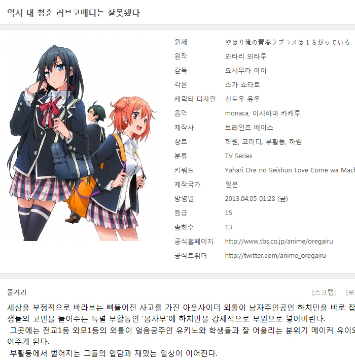 - Yahari Ore no Seishun Love Come wa Machigatteiru - 01 [BDRip 1280x720].mp4|Yahari Ore no Seishun Love Come wa Machigatteiru - 01 [BDRip 1280x720].smi|Yahari Ore no Seishun Love Come wa Machigatteiru - 02 [BDRip 1280x720].mp4|Yahari Ore no Seishun Love Com (8.0G) 다운로드 : 51,627