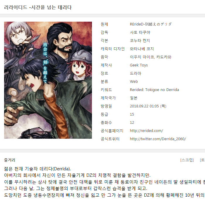 [인생] 리라이디드-시간을 넘는 데리다 01-12완결 -모험 SF 스릴러 액션-