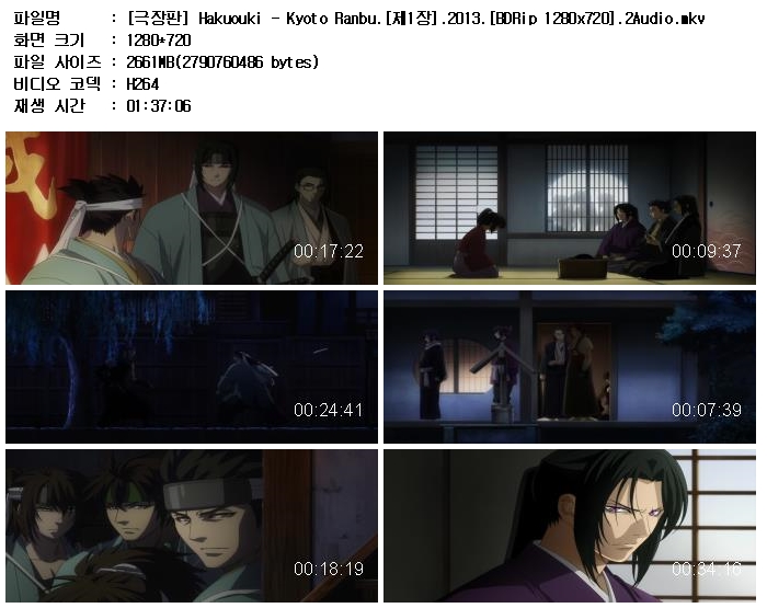 - [극장판] Hakuouki - Kyoto Ranbu.[제1장].2013.[BDRip 1280x720].2Audio.mkv|[극장판] Hakuouki - Kyoto Ranbu.[제1장].2013.[BDRip 1280x720].2Audio.smi|[극장판] Hakuouki - Shikon Soukyuu.[제2장].2014.[BDRip 1280x720].2Audio.mkv|[극장판] Hakuouki - Shikon Soukyuu.[제2장].2014.[BDRi (5.0G) 다운로드 : 52,392