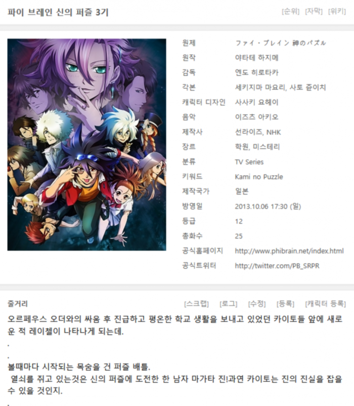 [완결] 파이 브레인. 신의 퍼즐 3기 1-25화 (완) 720p