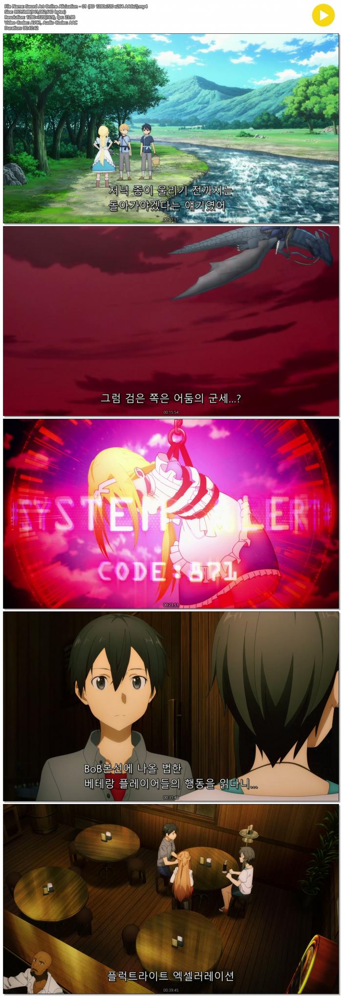 - Sword Art Online Alicization - 01 (BD 1280x720 x264 AACx2).mp4|Sword Art Online Alicization - 01 (BD 1280x720 x264 AACx2).rt Online Alicization - 02 (BD 1280x720 x264 AAC).mp4|Sword Art Online Alicization - 02 (BD 1280x720 x264 AAC).torrent (11.0G) 다운로드 : 54,186