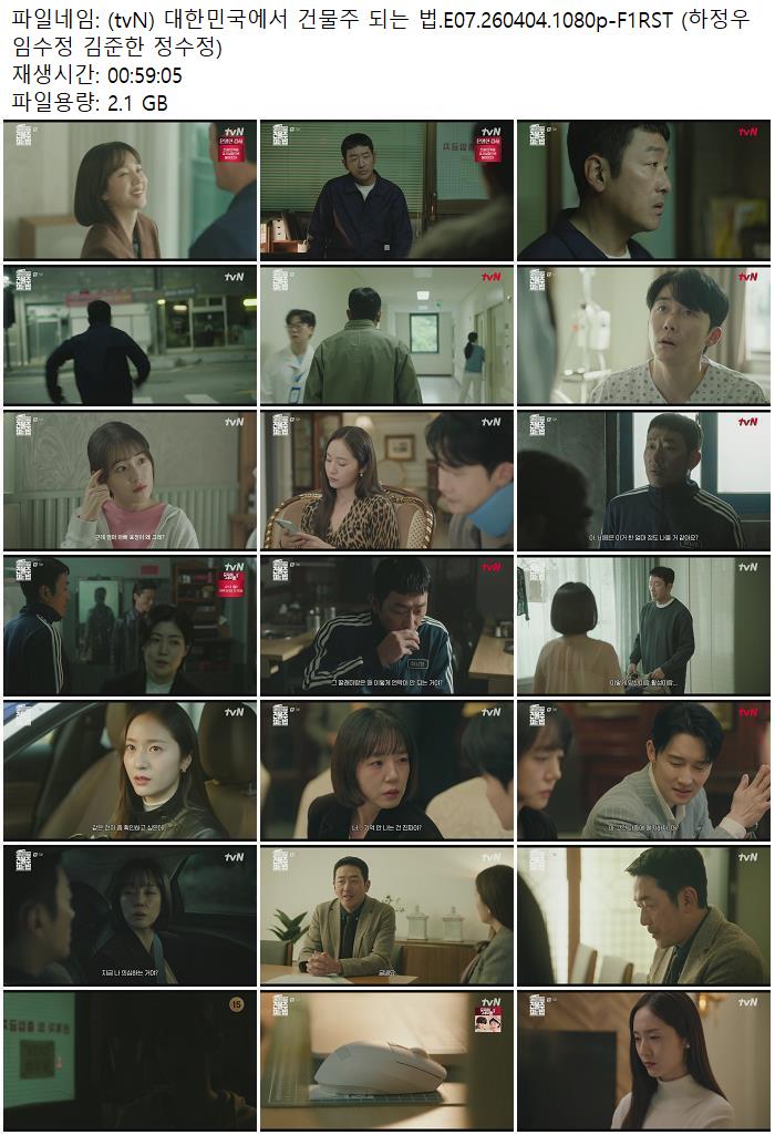 드라마 드라마 (tvN) 대한민국에서 건물주 되는 법.E07.260404.1080p-F1RST (하정.. ceasar1995 2026.04.23 5,785 480 다운로드 추천 480 북마크 공유 다운로드 파일 · 1개 (tvN) 대한민국에서 건물주 되는 법.E07.260404.1080p-F1RST (하정우 임.. FILE 2.1G 다운로드 TAGS #tvN #대한민국에서 #건물주 #되는 #E07