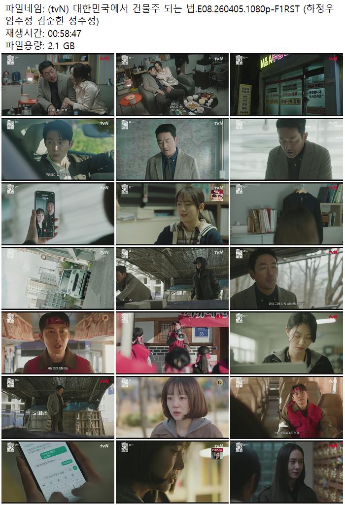 드라마 드라마 (tvN) 대한민국에서 건물주 되는 법.E08.260405.1080p-F1RST (하정.. ceasar1995 2026.04.23 6,564 241 다운로드 추천 241 북마크 공유 다운로드 파일 · 1개 (tvN) 대한민국에서 건물주 되는 법.E08.260405.1080p-F1RST (하정우 임.. FILE 2.1G 다운로드 TAGS #tvN #대한민국에서 #건물주 #되는 #E08