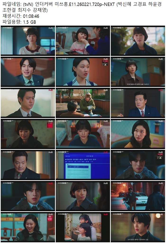 드라마 드라마 (tvN) 언더커버 미쓰홍.E11.260221.720p-NEXT (박신혜 고경표 하윤.. ceasar1995 2026.04.24 6,351 265 다운로드 추천 265 북마크 공유 다운로드 파일 · 1개 (tvN) 언더커버 미쓰홍.E11.260221.720p-NEXT (박신혜 고경표 하윤경 조.. FILE 1.5G 다운로드 TAGS #tvN #언더커버 #미쓰홍 #E11 #NEXT