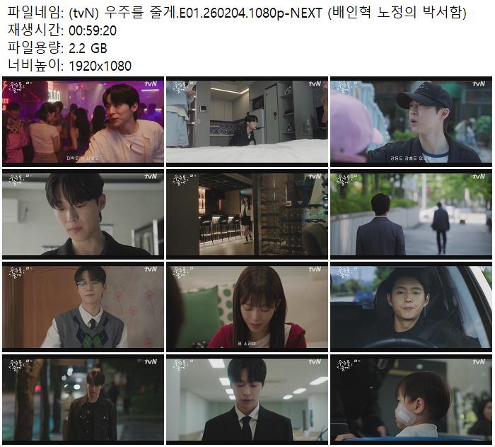 드라마 드라마 (tvN) 우주를 줄게.E01.260204.1080p-NEXT (배인혁 노정의 박서함) ceasar1995 2026.04.24 4,489 248 다운로드 추천 248 북마크 공유 다운로드 파일 · 1개 (tvN) 우주를 줄게.E01.260204.1080p-NEXT (배인혁 노정의 박서함).mp4 FILE 2.2G 다운로드 TAGS #tvN #우주를 #줄게 #E01 #NEXT